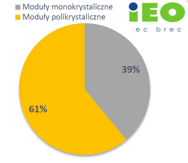 Podobnie jak w latach wcześniejszych, również w 2018 roku nadal dominują moduły fotowoltaiczne polikrystaliczne. Chociaż, udział w sprzedaży modułów monokrystalicznych wzrósł z 32% w 2017 r, do 39% w 2018 r.
